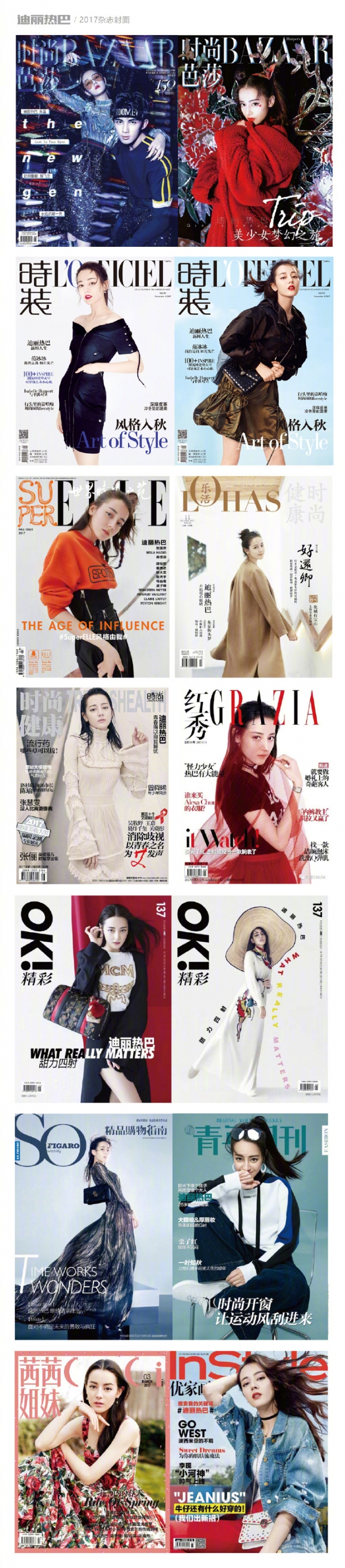 2017年,迪丽热巴卯足了劲,杂志封面轮番出击,青春俏丽,清新文艺……每一个她都无比精彩!努力的小姐姐是不会被辜负的,2018年还未至,就率先拿到三封开年刊,新的一年里她将继续闪耀,继续精彩!
